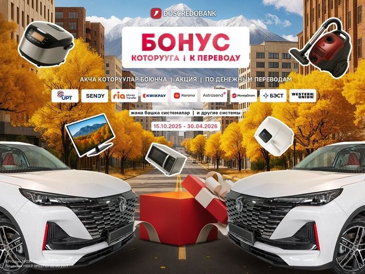 Doscredobank объявляет о старте новой клиентской акции под названием «Бонус к переводу», которая проходит с 15 октября 2025 года по 30 апреля 2026 года. В этот период каждый клиент, получающий денежные переводы из России через Doscredobank, имеет возможность выиграть два современных электромобиля и другие ценные призы.