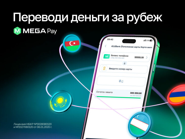 С помощью MegaPay пользователи могут круглосуточно переводить средства на карты банков Армении, Азербайджана, Казахстана, Таджикистана и Узбекистана — полностью онлайн, без очередей и лишних хлопот.