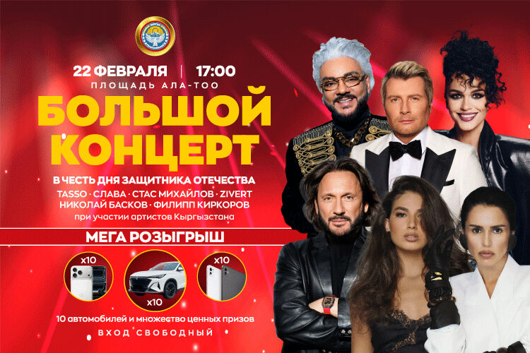 22 февраля на площади Ала-Тоо в Бишкеке состоится большой праздничный концерт, приуроченный ко Дню защитника Отечества. Мероприятие пройдет при поддержке президента Кыргызской Республики и станет одним из крупнейших городских событий зимнего сезона.