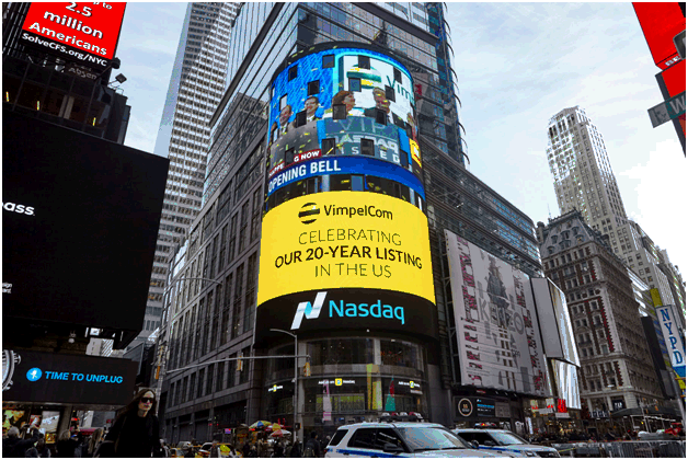 «ВымпелКом» впервые был представлен на Нью-Йоркской фондовой бирже (NYSE) в 1996 году, перед переходом на биржу НАСДАК, чтобы занять свое место среди наиболее инновационных и успешных мировых технологических компаний. За последние 20 лет новаторский дух компании привел ее к развитию новых технологий на рынках присутствия.