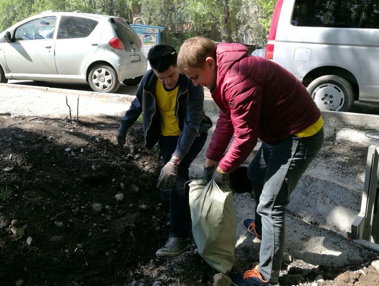 В Бишкеке ООО «Скай Мобайл» субботник приурочило ко Дню города. 150 сотрудников мобильного оператора, включая топ-менеджеров, вышли очистить от мусора выделенную администрацией Свердловского района территорию.