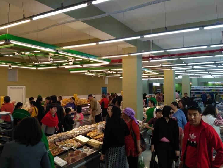 Особенно удобно для покупателей то, что на первом этаже «Чынара» начал работу крупнейший гипермаркет «Алма» площадью три тысячи квадратных метров.