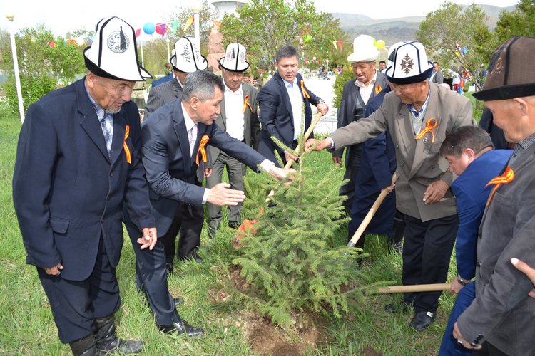 8 мая совместно с местными органами власти была организована посадка зеленых насаждений и плодовых деревьев на территории парка имени Героя Советского Союза А.Оторбаева в с. Чат-Базар Таласского района. В мероприятии участвовали ветераны, а также глава Таласской области и аким Таласского района.
