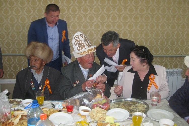 ОсОО «Альянс Алтын» совместно с Таласской районной администрацией в кафе «Каныкей» организовали для ветеранов праздничный обед с концертной программой. Всем участникам Великой Отечественной войны и труженикам тыла Таласского района от имени компании «Альянс Алтын» и Фонда «Бакубат Талас» были вручены денежные премии и продуктовые наборы.