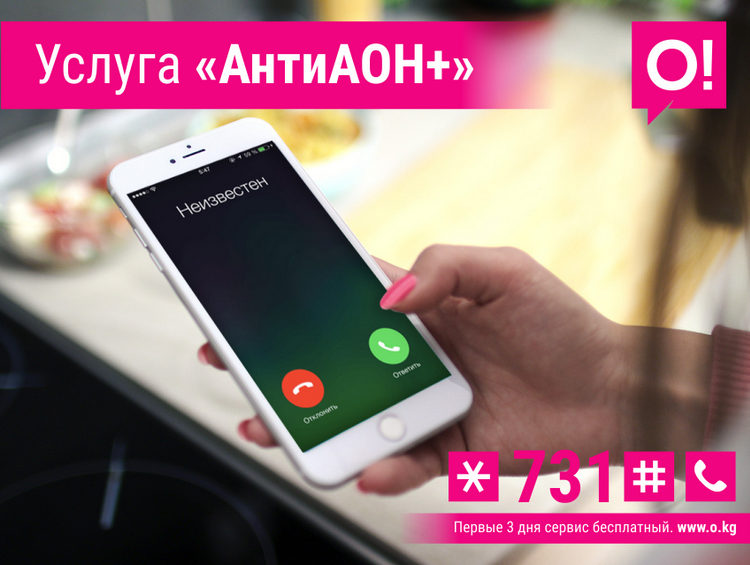 Разовый запрет определения номера. Есть еще одна возможность засекретить номер, но только для определенного собеседника, с помощью услуги «АнтиАОН+». Для этого нужно набрать номер следующей командой: #31#номер абонента, предварительно подключив услугу *731# вызов. Первые 3 дня с момента активации услуга предоставляется бесплатно. Затем абонентская плата составит всего 1,99 сома в день.