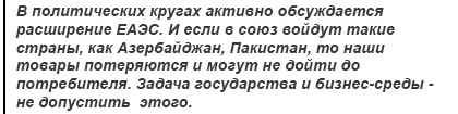 - Да, наши предприниматели ожидали более значимого результата от вступления в ЕАЭС. Они привыкли продавать свою продукцию на месте, отдавая ее перекупщикам, и это привело к тому, что мы не знаем внешнего рынка, мало адаптированы и не имеем иммунитета на развитый рынок, то есть не представляем, какие он таит риски. У фермеров нет поставщика, который работал бы на постоянной основе, они практикуют разовые продажи.