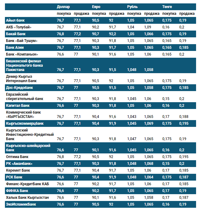 Курс доллара в коммерческих банках Кыргызстана на 6 августа