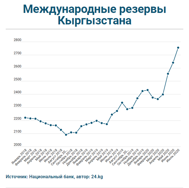 Валовые международные резервы Кыргызстана по итогам июля достигли $2 миллиардов 753,75 миллиона. Такие данные приводит Национальный банк.