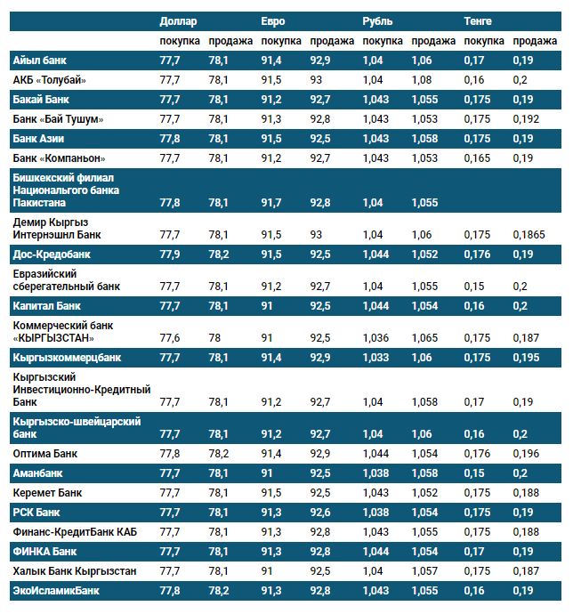 Курс доллара в коммерческих банках Кыргызстана на 25 августа