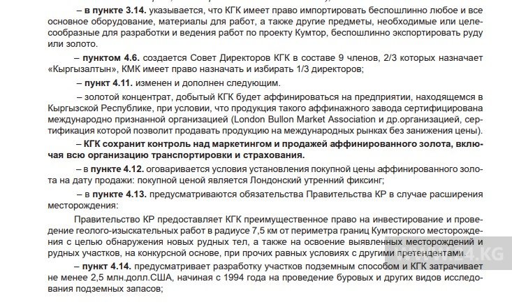 Если отношения «Кумтор Голд Компании» и «Кыргызалтына» до сих пор основываются на этом соглашении, то и золото Кумтора тоже нельзя будет перерабатывать на аффинажном заводе. От услуг предприятия могут просто отказаться. Единственный в стране завод может стать банкротом.