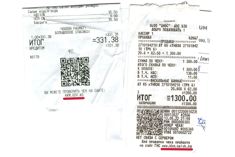 Данные с чеков, на которых указан сайт kkm.salyk.kg, попадают напрямую на сервер Государственной налоговой службы. Поэтому системе лотереи не требуется их обрабатывать. Если на чеке указан адрес kkm.gov.kg, это говорит о том, что контрольно-кассовая машина зарегистрирована в старой системе ГНС. Данные на сервер попадают через систему электронного взаимодействия «Тундук». Их обработка занимает более 72 часов, иногда доходит до 10 дней.