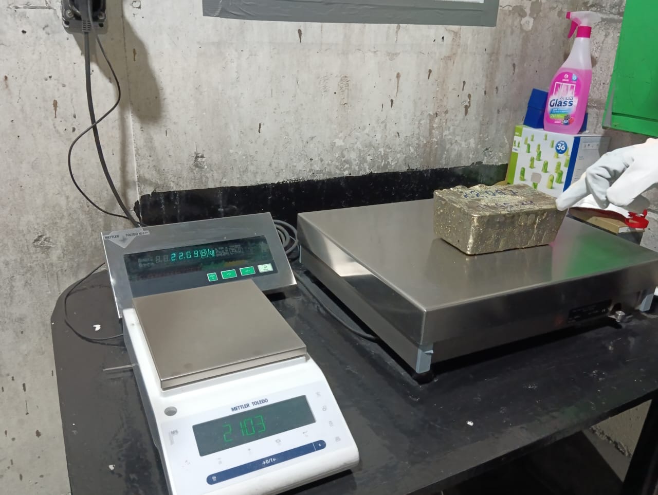 Готовый самородок высшего качества повторно идет на взвешивание, но уже на суперточных электронных весах. Золотой «кирпич» весит около 12 килограммов (с небольшой погрешностью).
