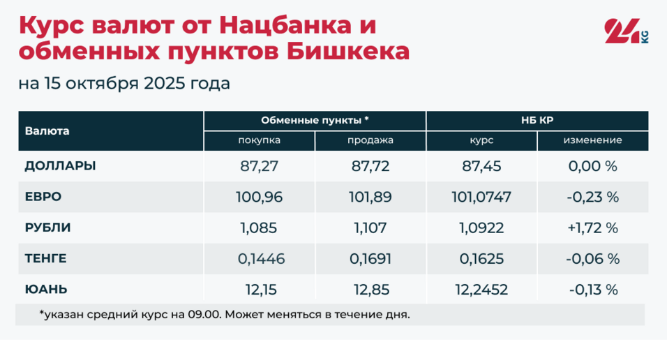 - Официальный курс НБ КР: 87,45 сома (без изменений).