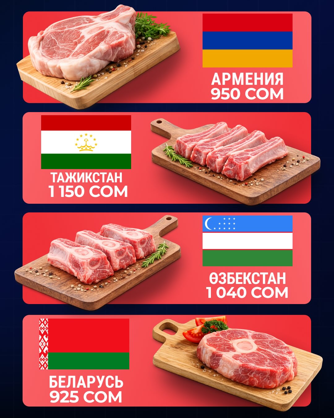 - Беларусь — 925 сомов