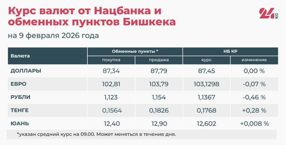 - Официальный курс НБ КР: 87,45 сома (без изменений).