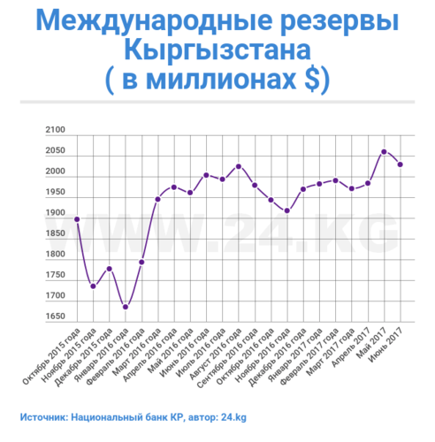 По итогам июня 2017 года резервы Кыргызстана превысили отметку в $2 миллиарда