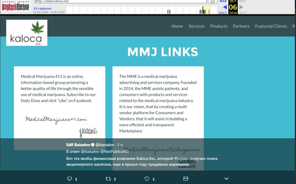 Самое веселое, что прошлое самого финансового консультанта не совсем идеальное. Компания активно ведет страницы в Twitter и Facebook. Так вот, анализ страницы Kaloca в Twitter дает потрясающие результаты. Оказывается, всего год назад Kaloca торговала... марихуаной.