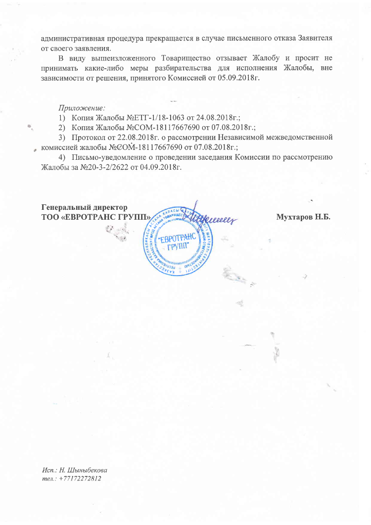 ТОО «Евротранс групп» передумало жаловаться в Департамент государственных закупок. Об этом говорится в письме компании.