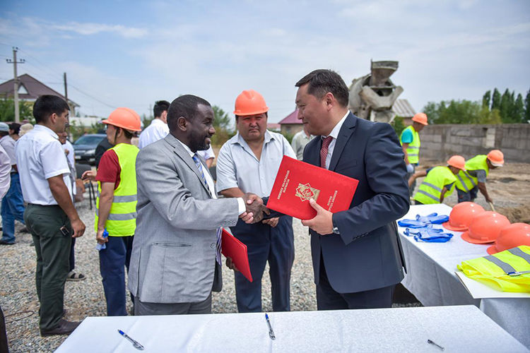 Renat Aytymbetov, head of the Public-State Capital Construction Department, and Osama Turabi, Director of the branch of Qatar charity organization Turabi in the Kyrgyz Republic, signed a corresponding agreement today at the Bishkek City Administration. Local residents, the mayor of the capital Aziz Surakmatov, the Extraordinary and Plenipotentiary Ambassador of the State of Qatar to Kyrgyzstan Ahmad Abdullah Saleh Al Suleyti laid a capsule at the construction site in the housing estate.