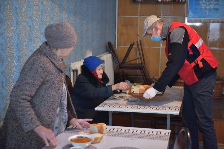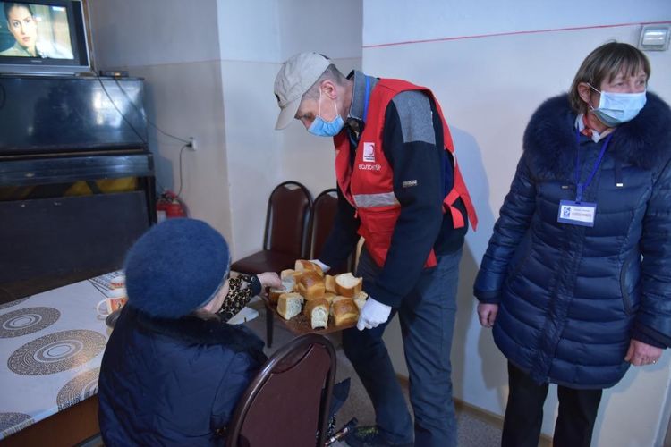 Ambassador of the United Kingdom to Kyrgyzstan Charles Garrett, together with Red Crescent volunteers and the Social Development Department of Bishkek City Hall, fed the homeless at Kolomto municipal center with hot pea soup.