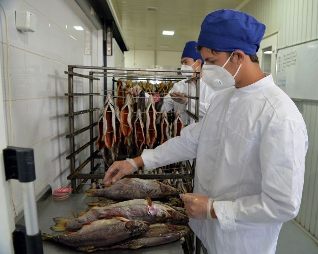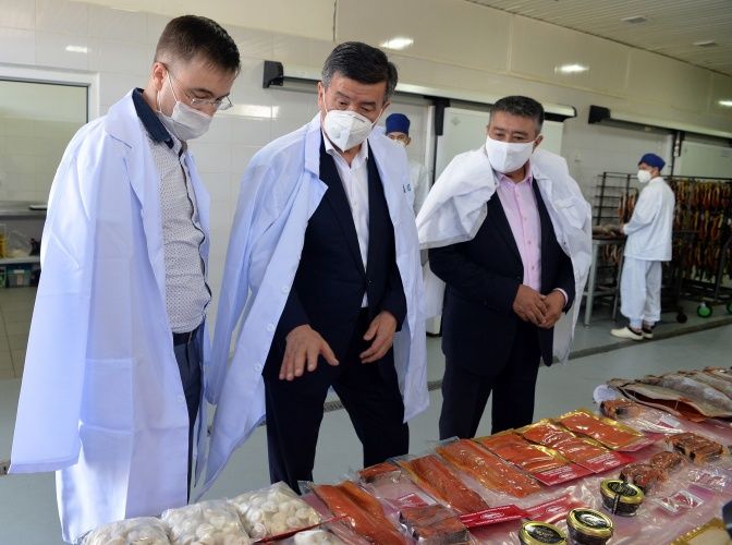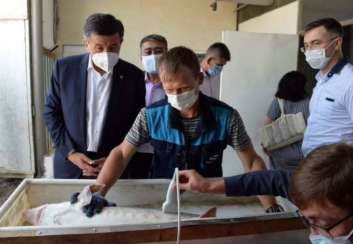 The head of state visited Aqua Service LLC, which produces sturgeon caviar, various trout products and semi-finished products. The manufactured goods are sold both in the domestic market and exported to Russia and Kazakhstan.
