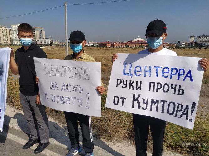 Environmental activists hold another protest in front of the U.S. Embassy in Bishkek. They want to achieve a fair decision by the New York court, where the trial between the Kyrgyzstan’s authorities and the Canadian gold mining company Centerra Gold Inc. is to start today.