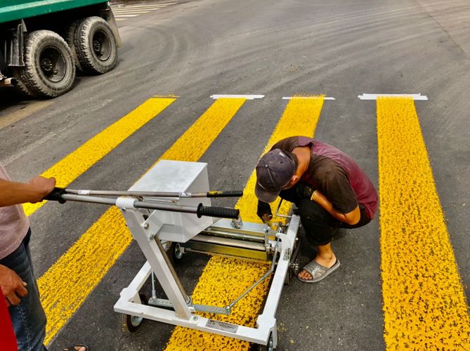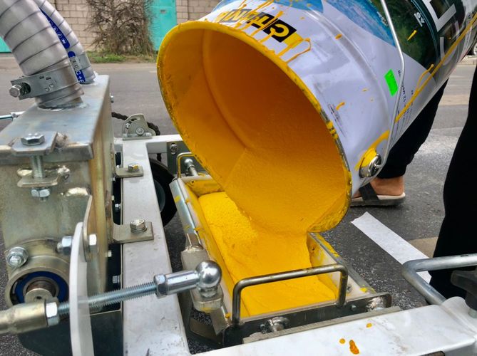 The enterprise applies cold plastic manually, and road paint and thermoplastic — using the marking machine.