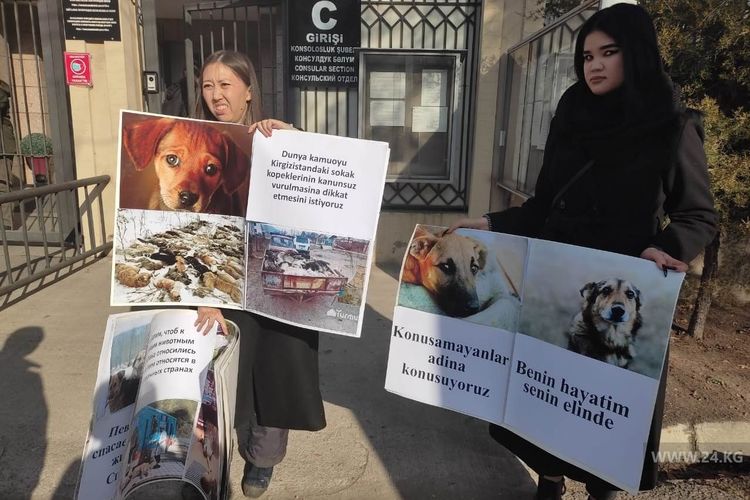Volunteers held a rally against shooting of stray dogs in front of the Embassy of Turkey in Bishkek.