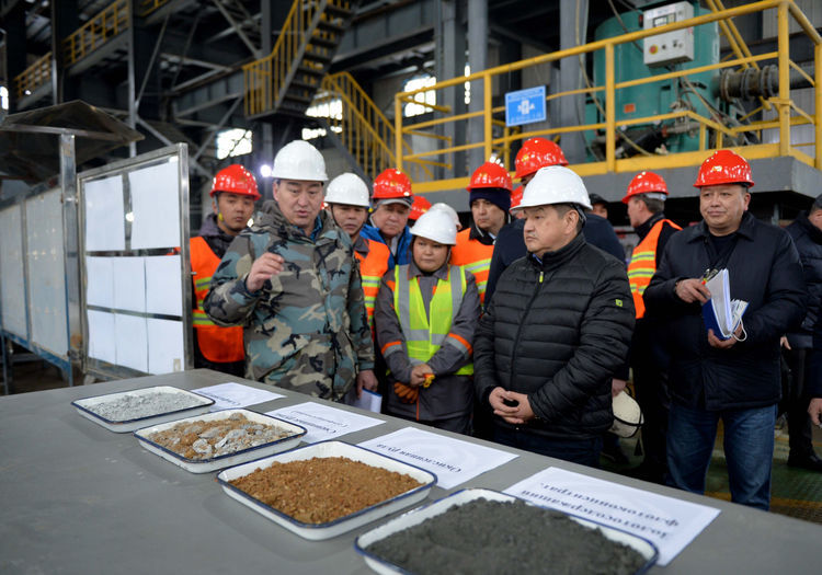 Akylbek Japarov also visited Terek-Sai deposit, where Eti Bakyr Tereksai LLC mines gold. He got acquainted with the work of the gold recovery plant in a test mode and examined the tailing dump.