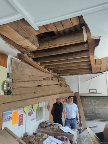 Ceiling collapsed in one of the classrooms of a secondary school in Terek-Sai village, Chatkal district. A teacher and students were taken to hospital. Press service of the Ministry of Emergency Situations reported.