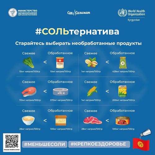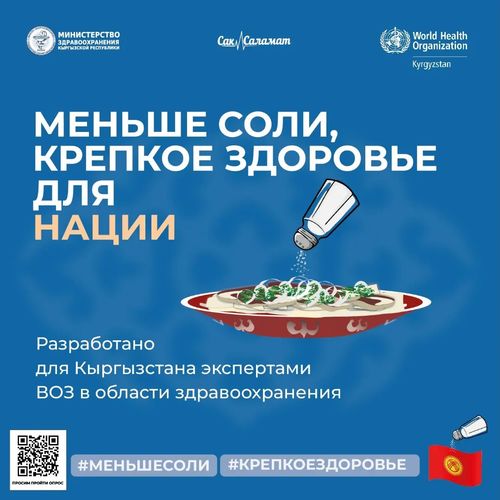 The campaign aims to raise awareness of the risks of excess salt consumption and encourage healthier lifestyles. It is being carried out in cooperation with the Department of State Sanitary and Epidemiological Surveillance and the WHO Representative Office in Kyrgyzstan.