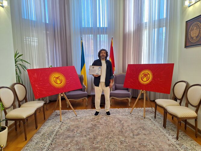 Ambassador of Kyrgyzstan to Ukraine Idris Kadyrkulov told 24-kg.com news agency that an employee of the diplomatic mission brought the flag from Bishkek at the end of last week.«We were probably among the last to receive the flag. As you know, no airplanes have been flying to Kyiv since the beginning of the war, so our employee delivered the flag himself. He went to Bishkek for it,» he explained.