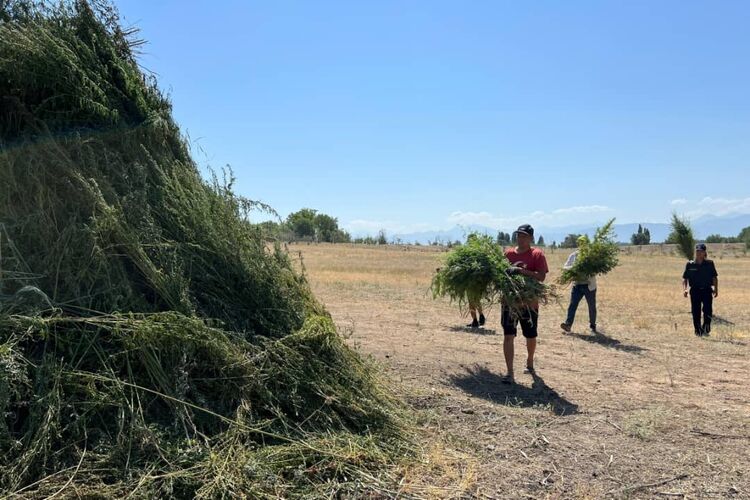 Officers of Drug Control Service of the Internal Affairs Department of Talas region, the Bakai-Ata district police department and employees of Bakai-Ata and Kumushtak rural districts mowed down wild hemp on 60 ares. According to the police, destruction of the narcotic plant is being carried out as part of prevention measures among the local population.