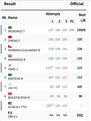 Kyrgyzstani Mirgul Bolotalieva took eighth place at the powerlifting tournament within the Paralympic Games in Paris. The Games website says.