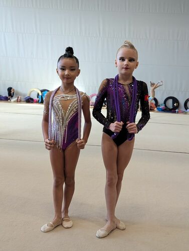 The gymnasts train at the Academy of Gymnastics Club and represent Yntymak Youth Sports School. Their coach is Elina Ratinova.