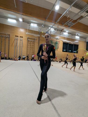 Among the gymnasts born in 2013, Adel Iskhazova took third place in the all-around and hoop final.