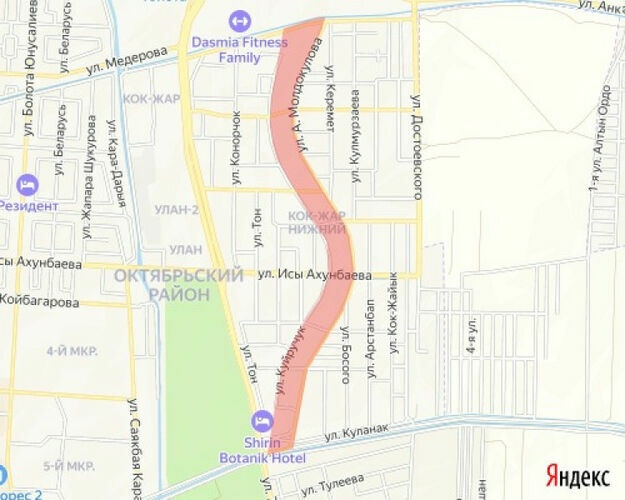 In addition, there will be no water in the section limited by Southern Big Chui Canal- Kuiruchuk Street — Eastern Big Chui Canal — Moldokulov Street.