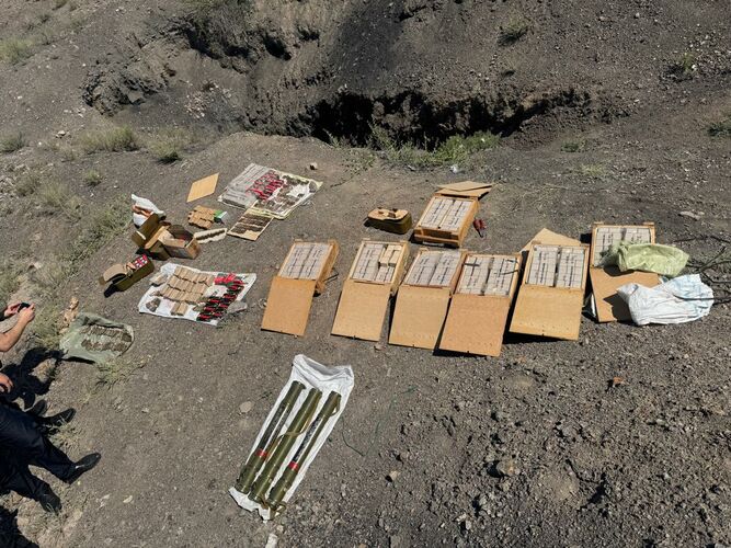 «The following ammunition was found: live ammunition of 5.45; 7.62-39; 7.62-52 and 7.62-54 mm calibers, about 20,000 pieces, as well as 3 units of RPG-18 Mukha grenade launcher. It is possible that the ammunition and firearms could be used in the future for criminal purposes by criminal and other destructive individuals, possibly interested in escalating the socio-political situation in the border areas of Batken region,» the statement says.
