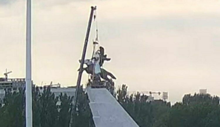 A new monument to Manas is being installed on Ala-Too Square in Bishkek, as confirmed by live camera footage.
