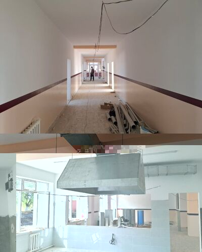 The new school is being built on the site of the old building and will consist of four blocks. A modern two-story building with a total area of 1,956 square meters is being constructed taking into account all current standards and requirements. It is designed for 275 students.