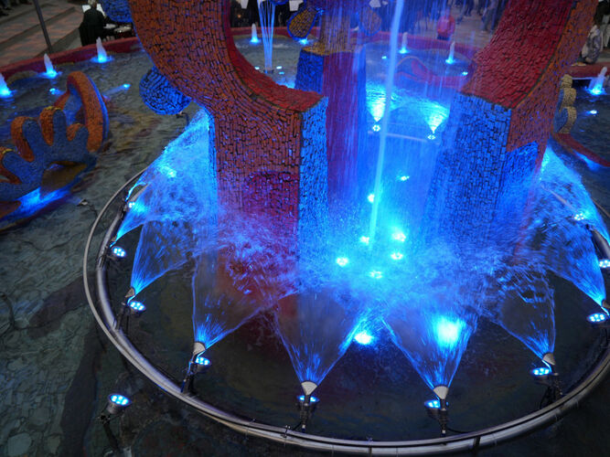 The repair included a full range of dismantling and restoration works. The fountain’s surface was cleaned with sandblasting; the old water supply system, excess concrete layer above the mosaic, outdated pavement, and lighting were all removed.