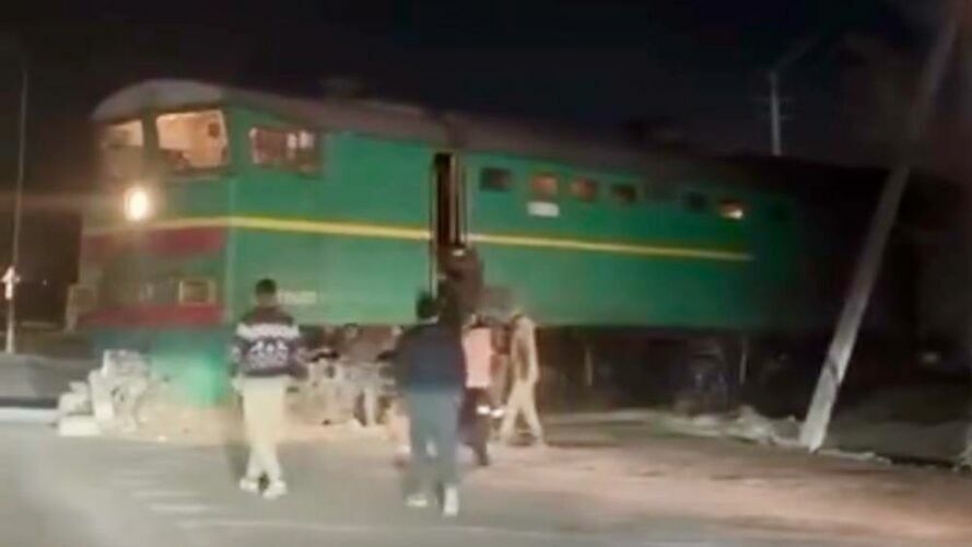 A locomotive drove onto the roadway in Balykchy, eyewitnesses reported on social media.
