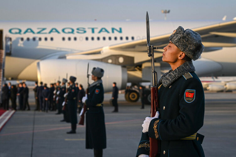 According to the press service, the leaders were welcomed at Manas International Airport by Chairman of the Cabinet of Ministers Adylbek Kasymaliev.