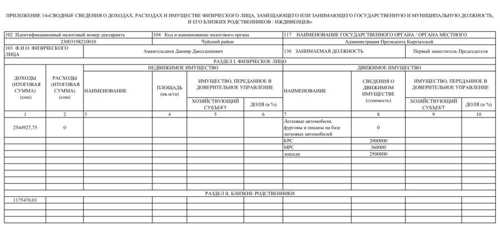 The income of his close relatives amounted to 1,175,470 soms.