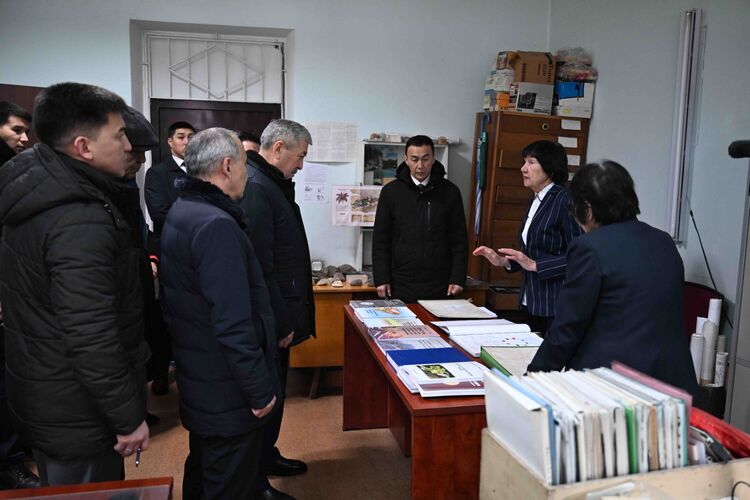 The head of the Cabinet toured the library, museum exhibits—including dinosaur remains discovered in Kyrgyzstan—as well as workspaces and laboratories.