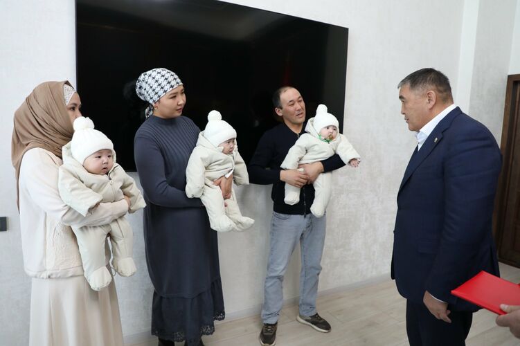 Kamchybek Tashiev, Chairman of the State Committee for National Security of Kyrgyzstan (SCNS), presented the keys to a two-room apartment to a young family in which triplets were born last year. The SCNS announced.