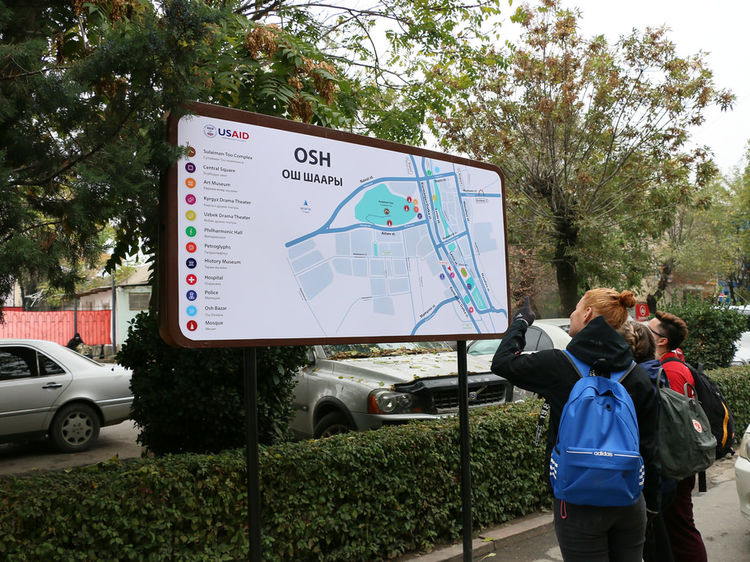 Since 2016, USAID has installed 80 directional signs along major roads, and street maps for walking tours in Osh and Karakol.