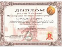 По его словам, золотой медалью и дипломом 28-й Международной книжной выставки-ярмарки (ВДНХ, Москва, сентябрь 2015-го) награждена монография «Физическая география Кыргызстана», подготовленная и изданная научными сотрудниками отдела географии Института геологии НАН КР под руководством президента Кыргызского географического общества Саламата Аламанова.