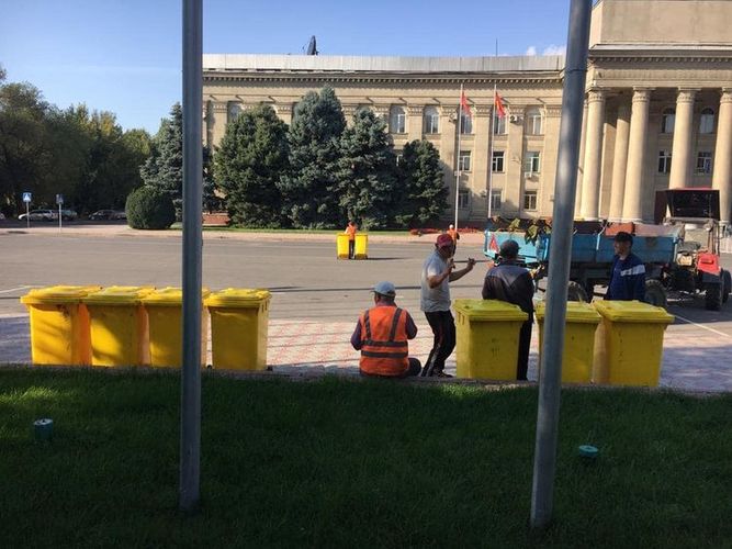 Айтымында, Эски аянтка пластмассадан жасалган 10 контейнер орнотулган. Анын баары толуп калган. Бирок, аянттын өзүндө таштанды болгон эмес.