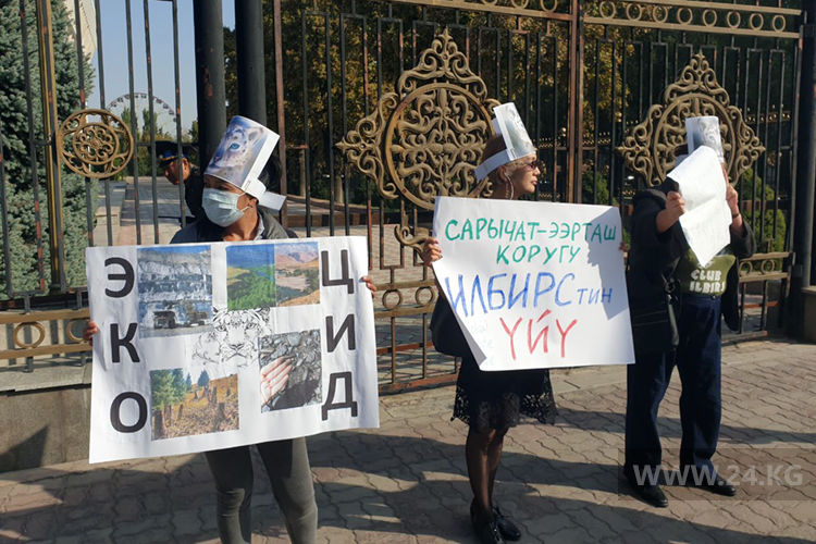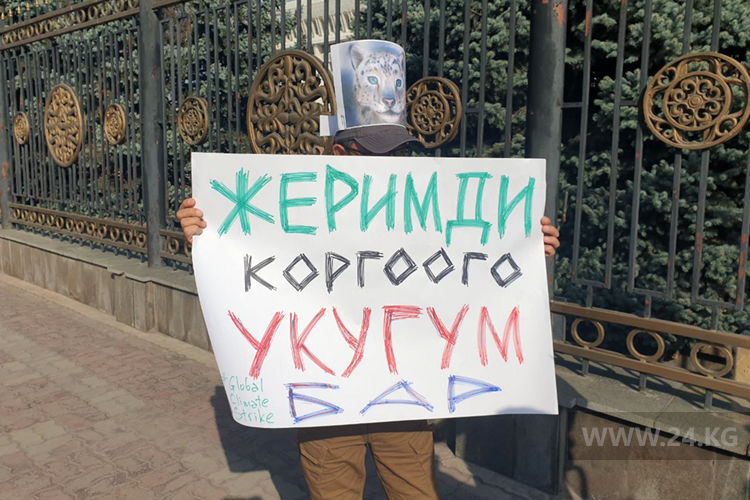 Бишкекте Жогорку Кеңештин имаратынын алдында курчап турган айлана-чөйрөнү булгоого каршы акция өтүп жатат.
